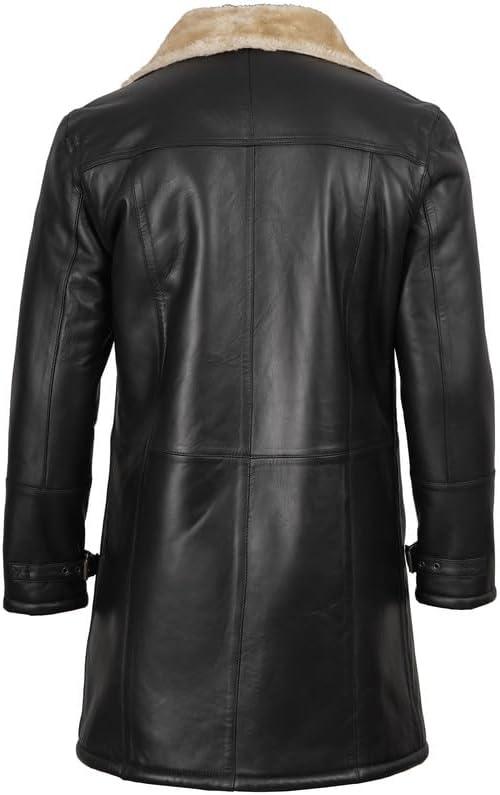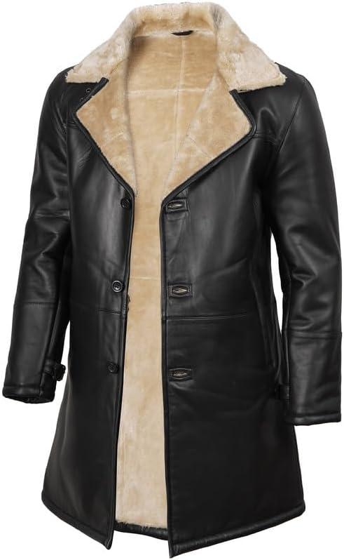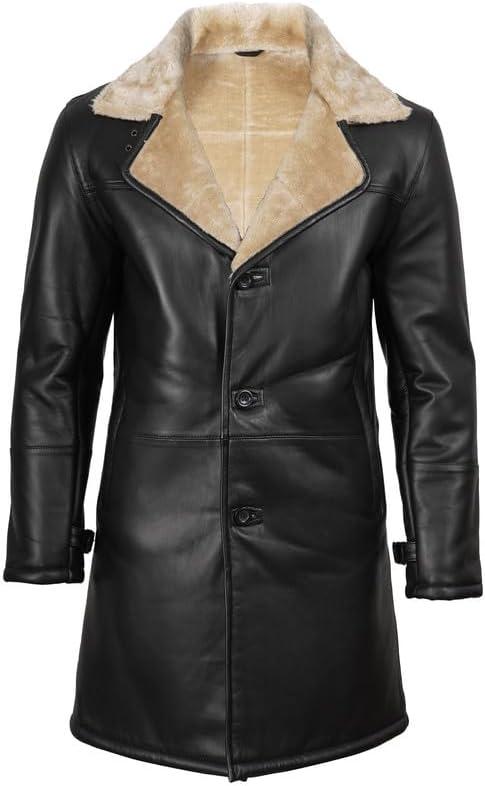 Blingsoul Black Car Coat Men – Winter Shearling Long Leather Jackets For Men(Black/Brown – Turlock Shearling Coat)