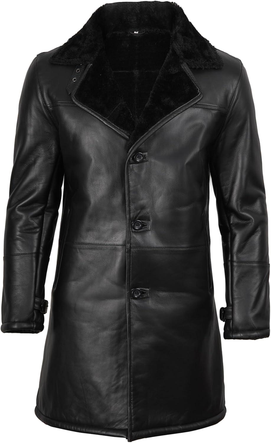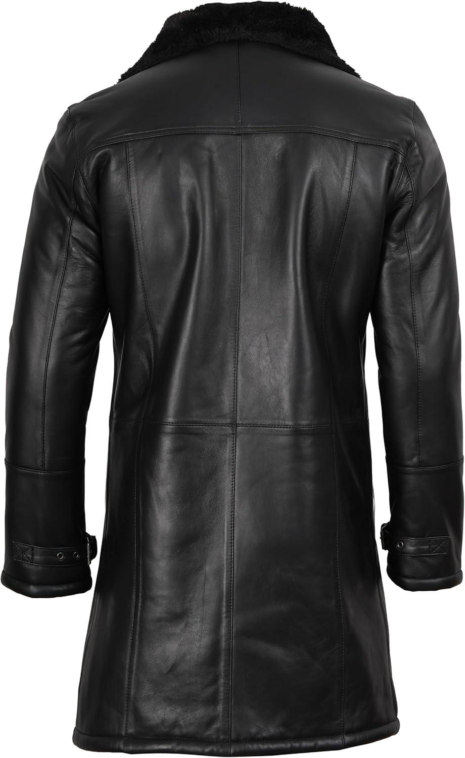 Blingsoul Real Lambskin Swedish Bomber Coat – Sherpa Lined Leather Jacket Fur Coats(Black – Shearling Coat)