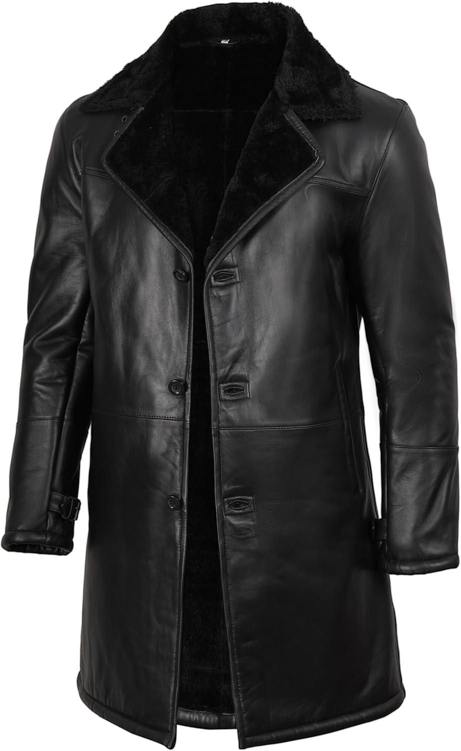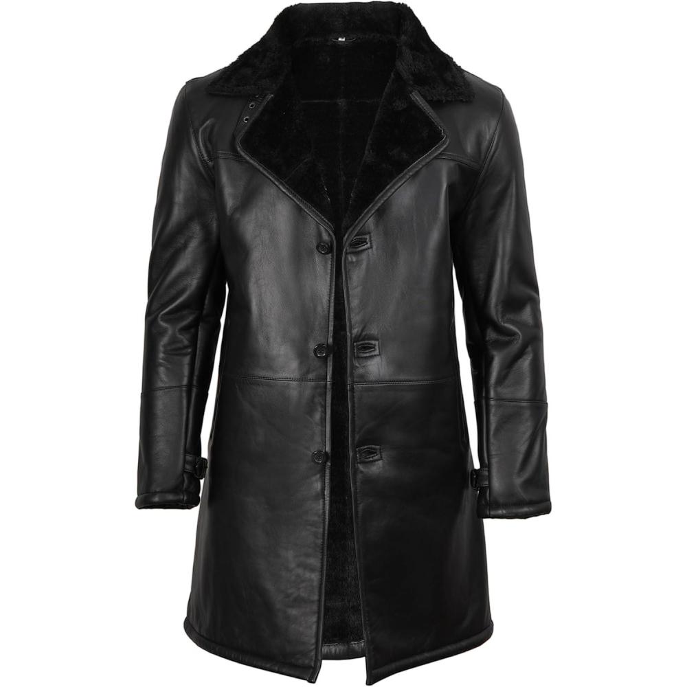 Blingsoul Disc Men’s Shearling Coat Black Leather Swedish Bomber Jacket | [1509934] Bain Real Black, L