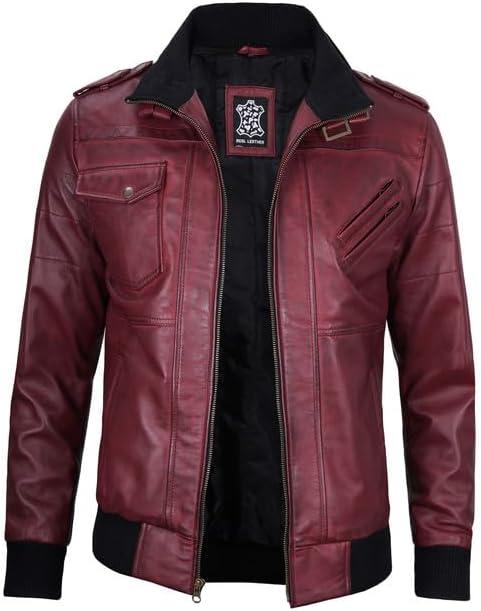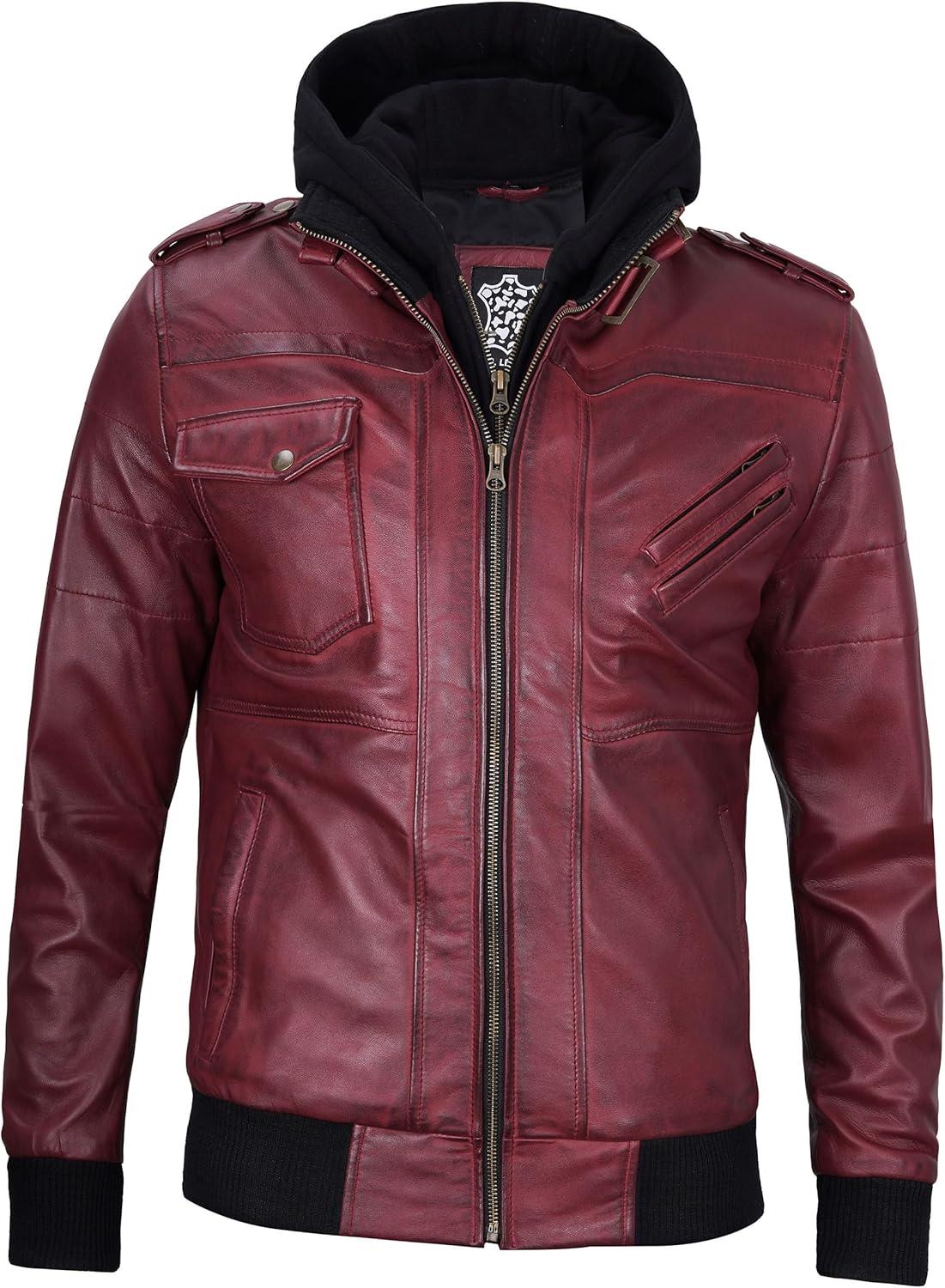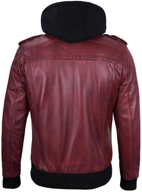 Blingsoul Leather Bomber Jackets For Men - Real Lambskin Mens Leather Jacket With Detachable Hood(Edinburgh - Maroon Jacket)
