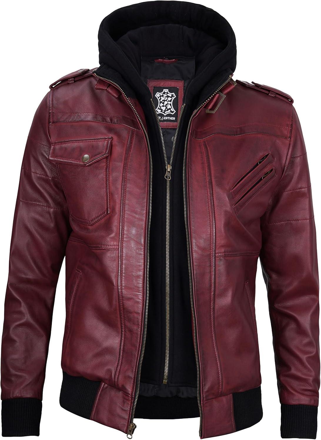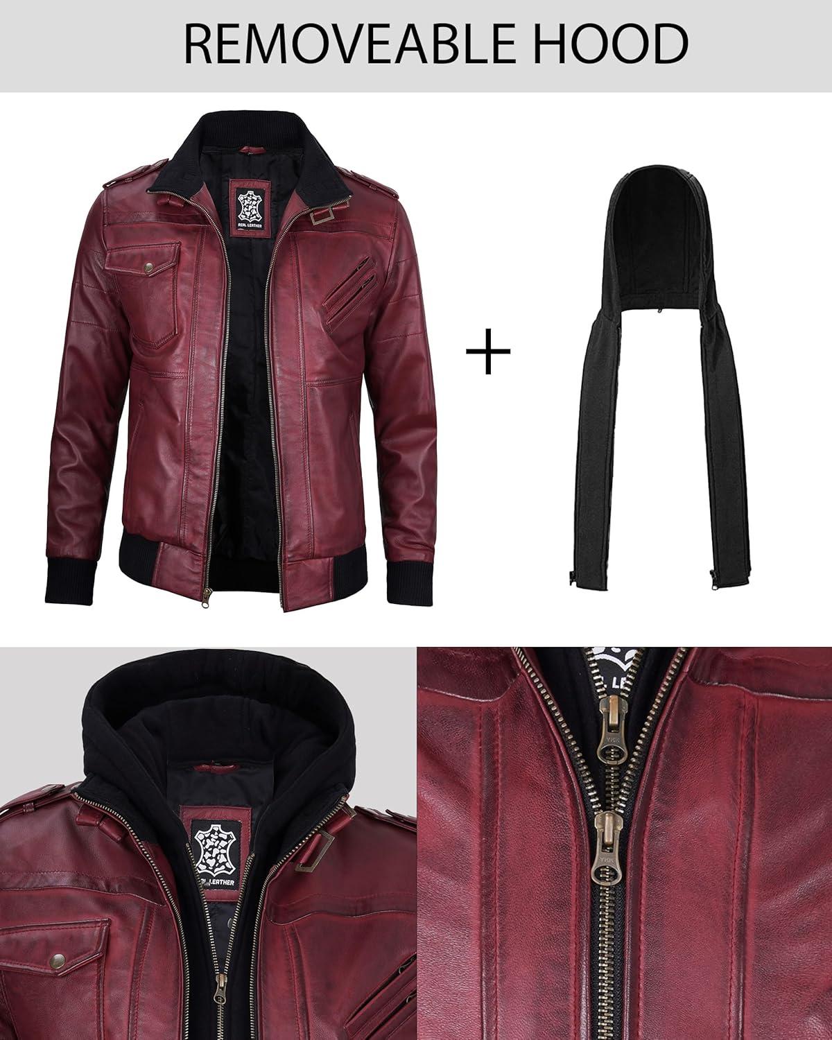 Blingsoul Leather Bomber Jackets For Men – Real Lambskin Mens Leather Jacket With Detachable Hood(Edinburgh – Maroon Jacket)