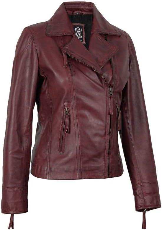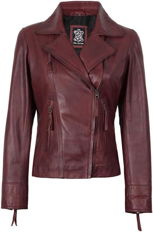 imageBlingsoul Leather Jacket Women  Real Lambskin Leather Asymmetrical Style Leather Jackets For WomensMaroon  Ramsey Jacket