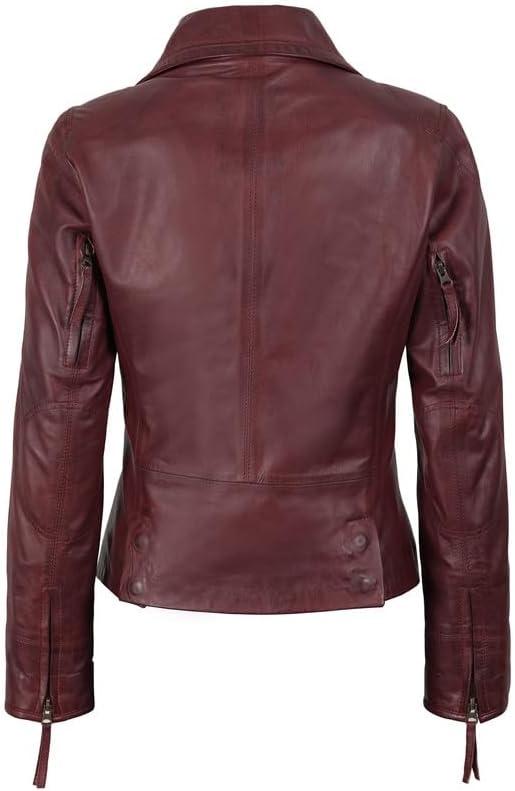 Blingsoul Leather Jacket Women – Real Lambskin Leather Asymmetrical Style Leather Jackets For Womens(Maroon – Ramsey Jacket)