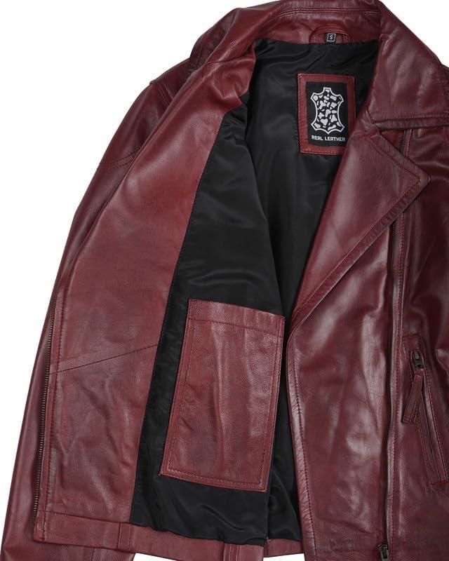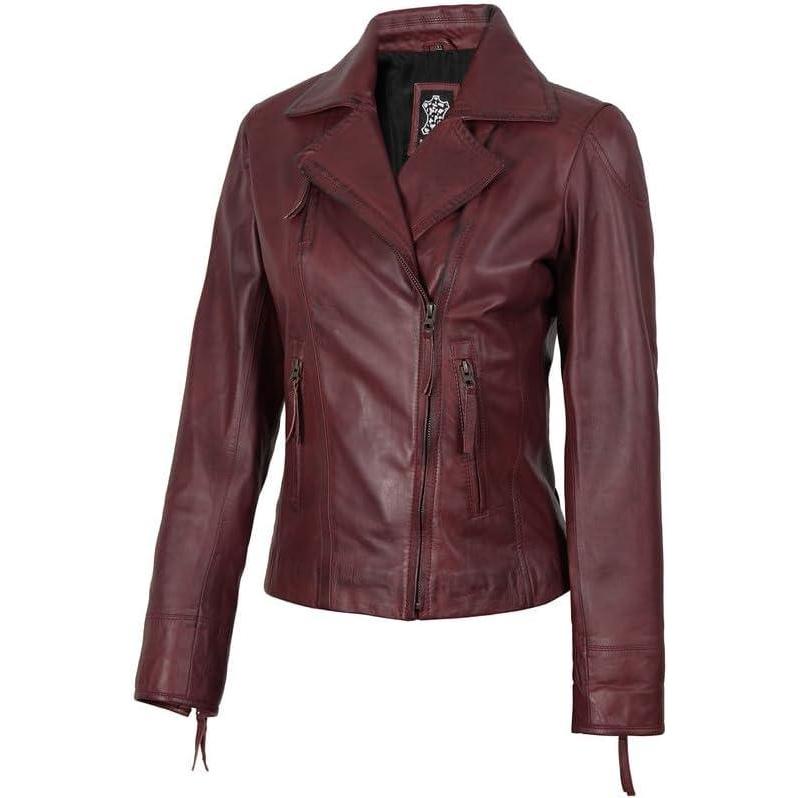Blingsoul Leather Jacket Women - Real Lambskin Leather Asymmetrical Style Leather Jackets For Womens(Maroon - Ramsey Jacket)