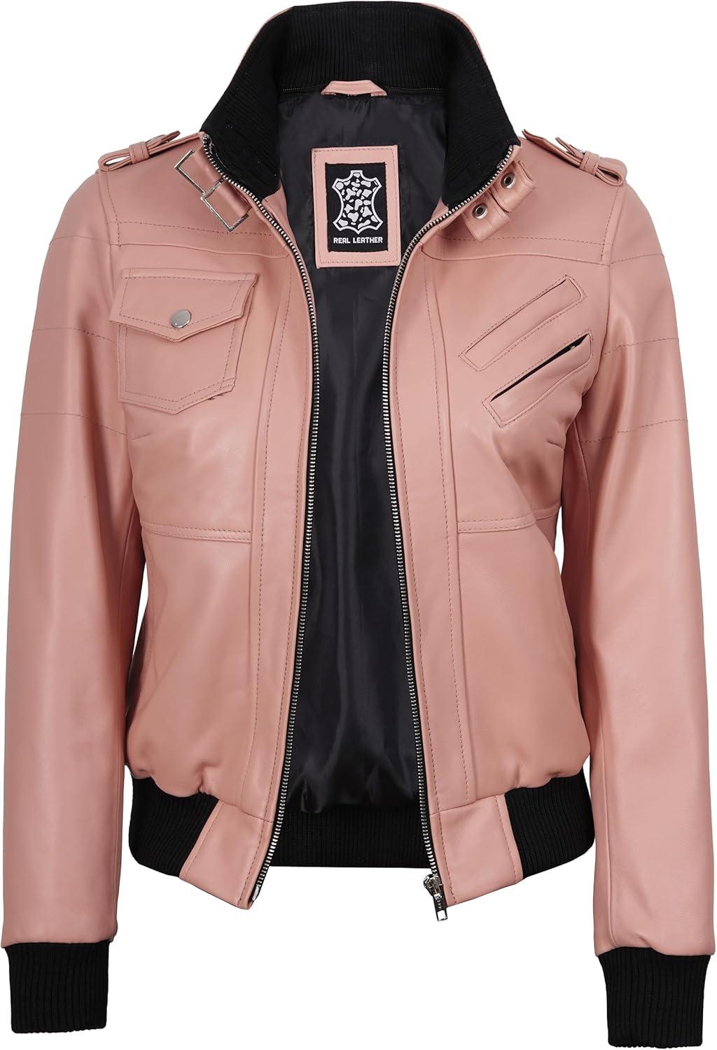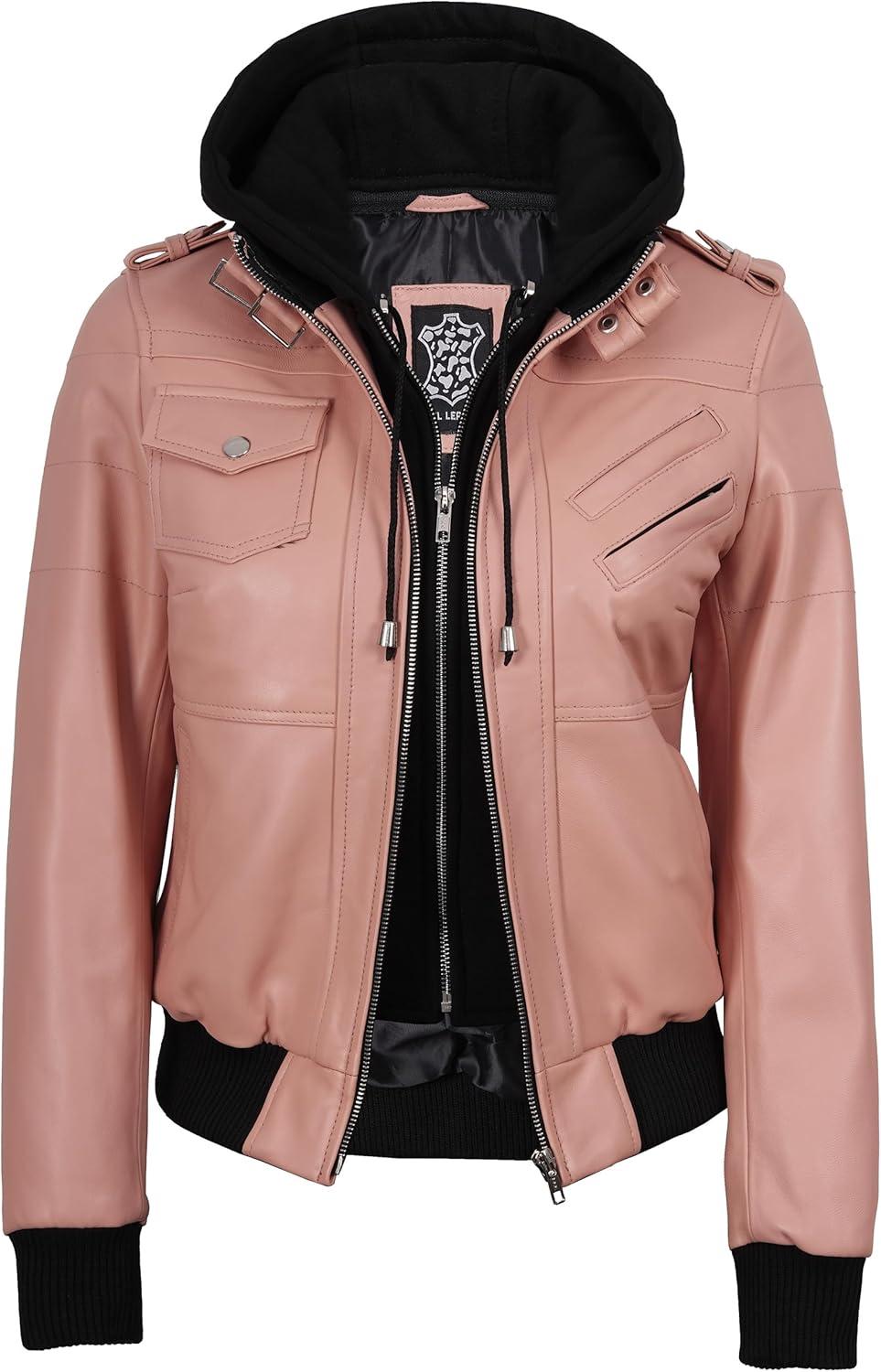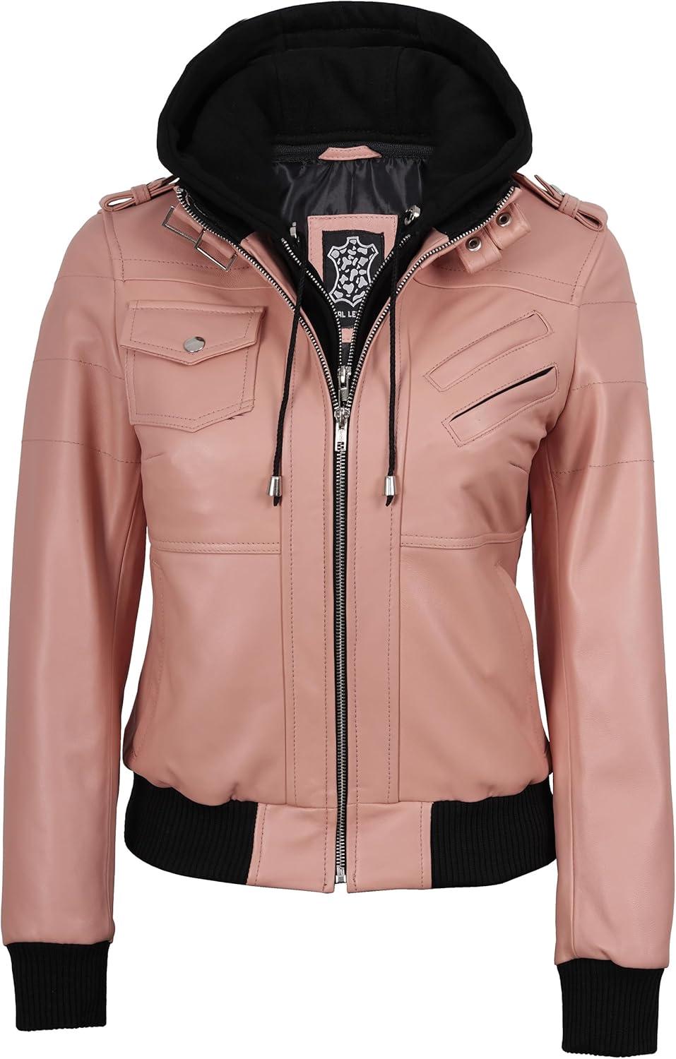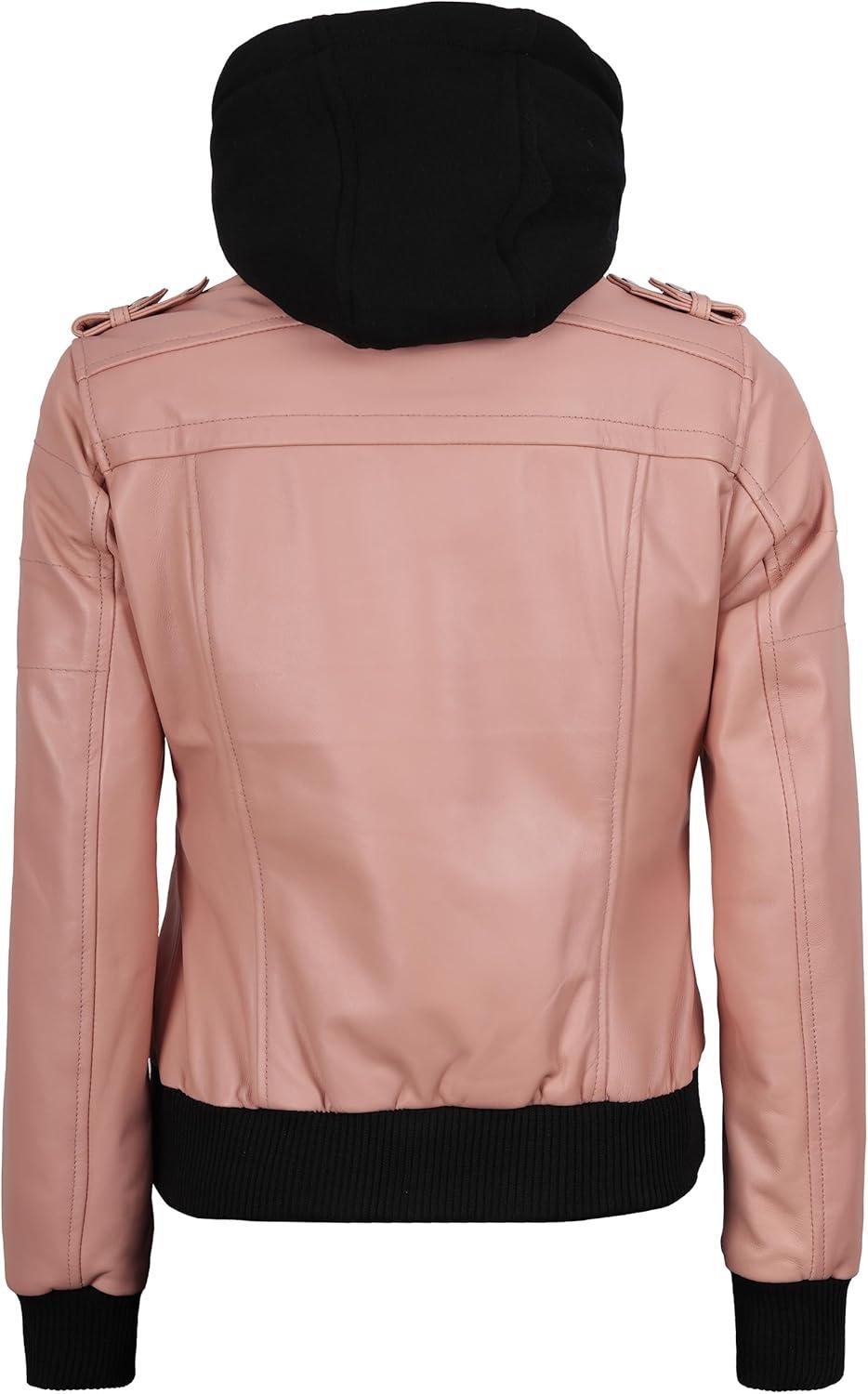 Blingsoul Leather Jacket Women - Real Lambskin Womens Leather Jackets With Detachable Hood(Edinburgh - Pink Jacket)