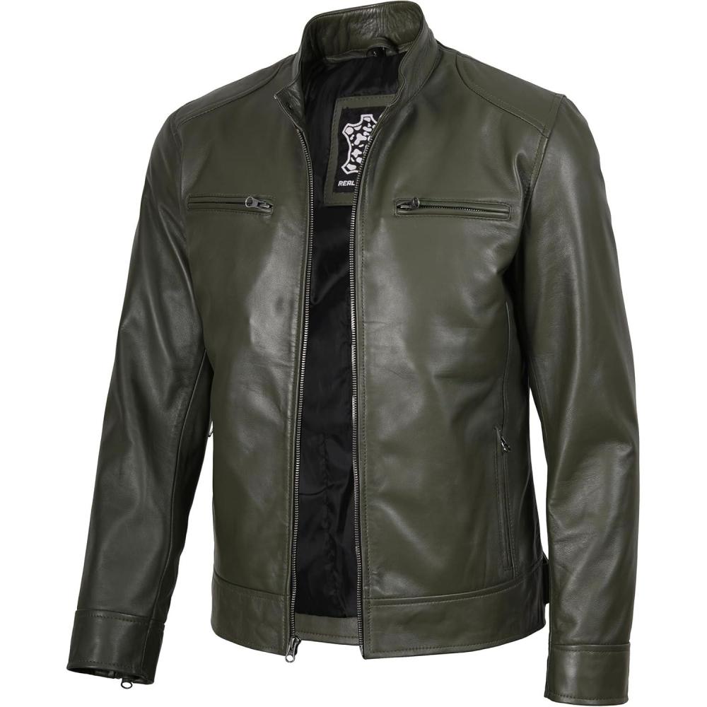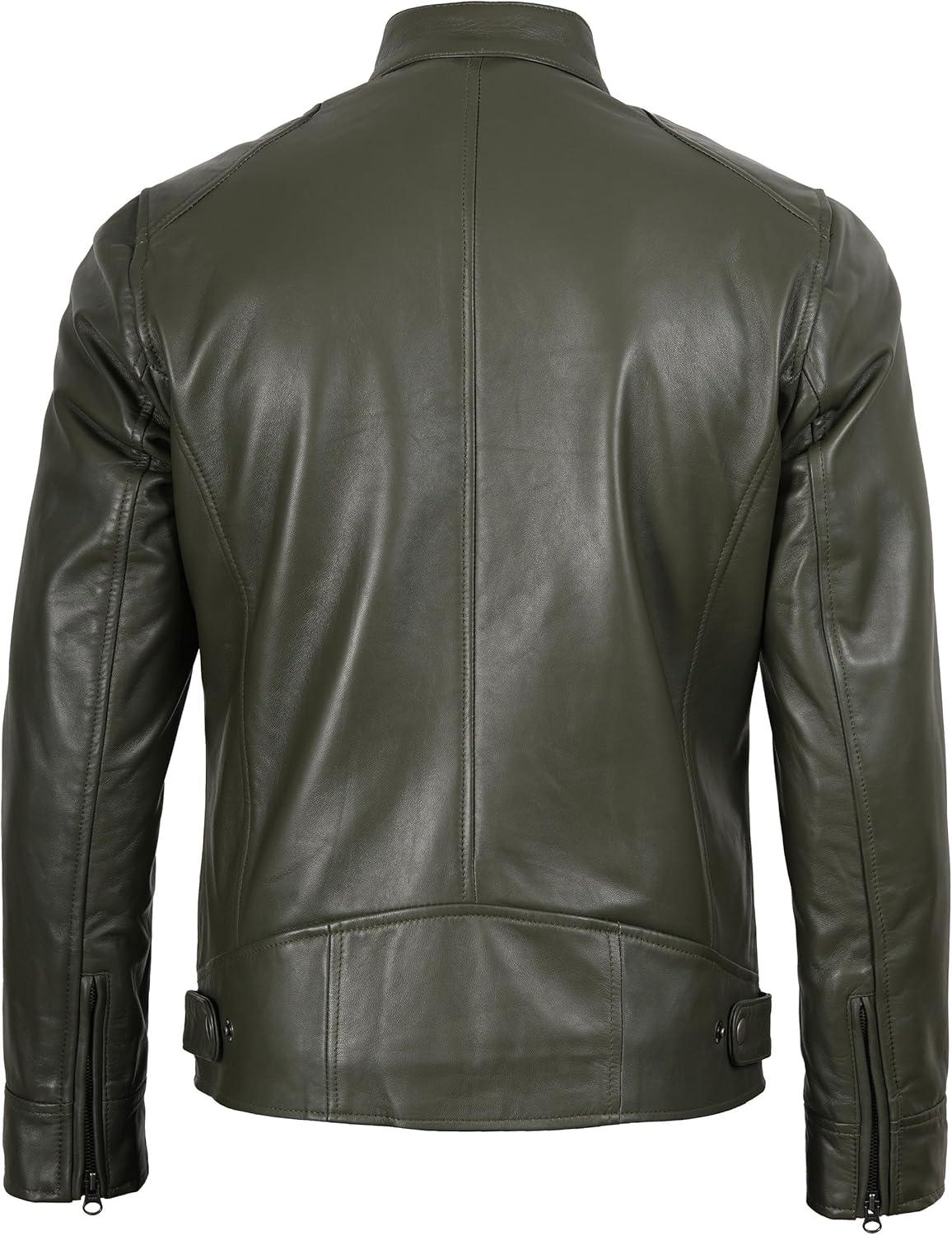 Blingsoul Leather Jackets For Men – Real Lambskin Motorcycle Style Mens Leather Jacket(Dodge – Olive Green Jacket)