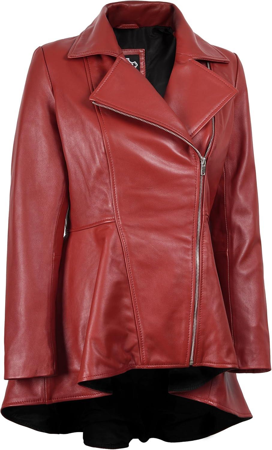 Blingsoul Leather Jackets For Women - Real Lambskin Womens Leather Jacket(Clarissa Peplum - Red Jacket)