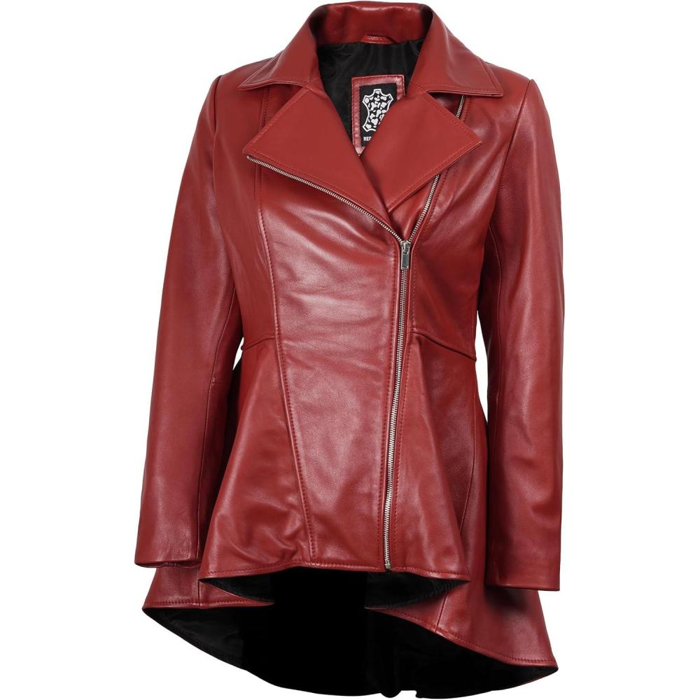 Blingsoul Leather Jackets For Women – Real Lambskin Womens Leather Jacket(Clarissa Peplum – Red Jacket)