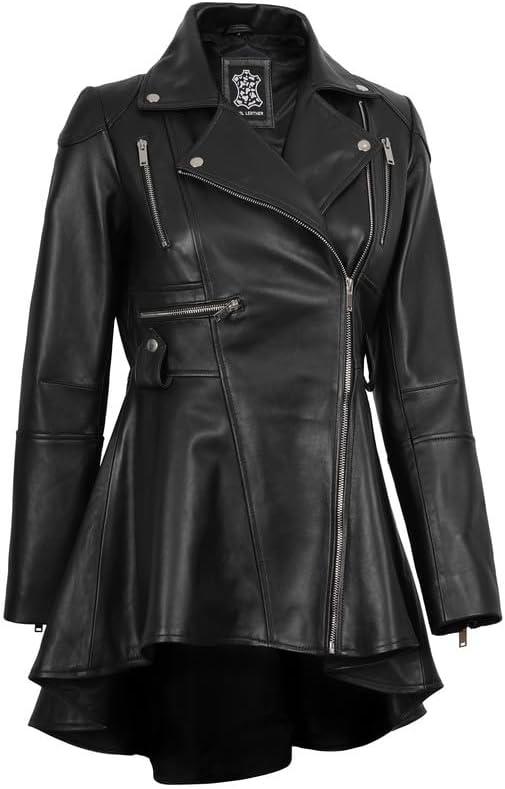 Blingsoul Leather Jackets For Women - Real Lambskin Womens Leather Jacket(Gonzalez - Black Peplum Jacket)