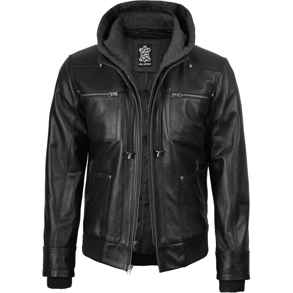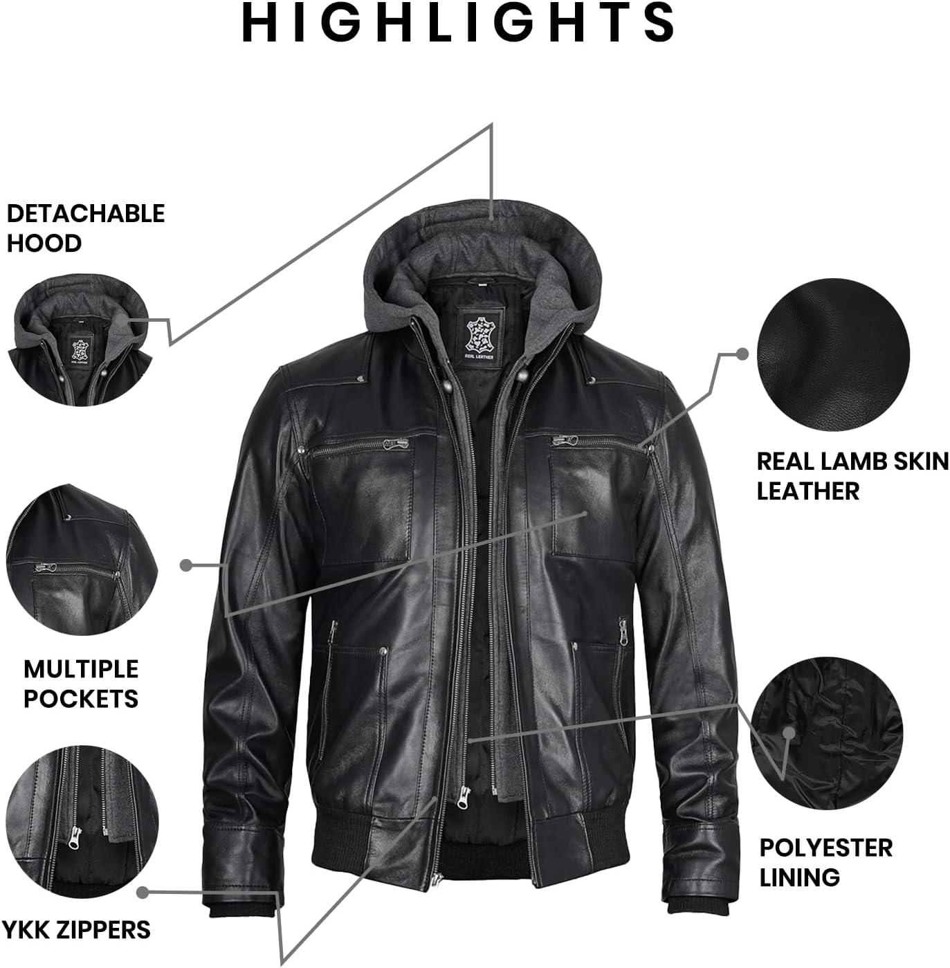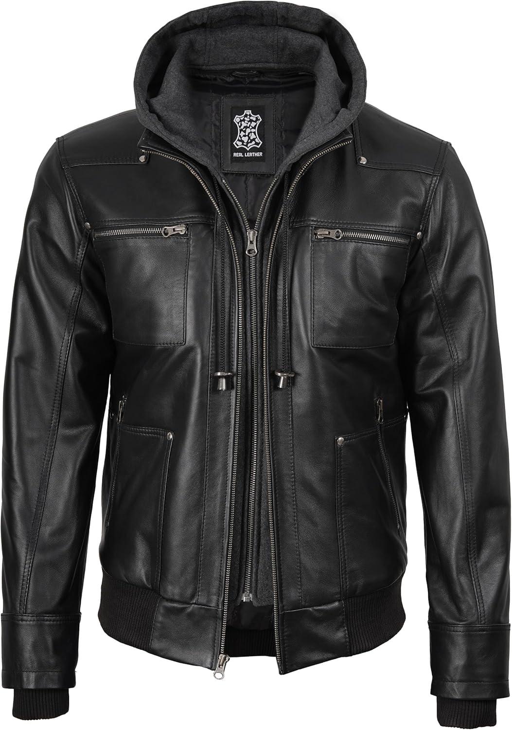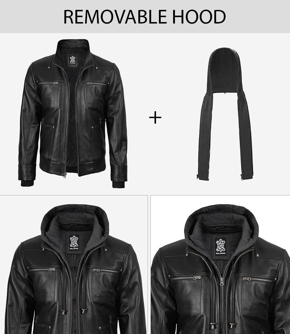 Blingsoul Mens Leather Jacket Removable Hooded Black Leather Jackets For Men(Black – Ferndale Jacket)