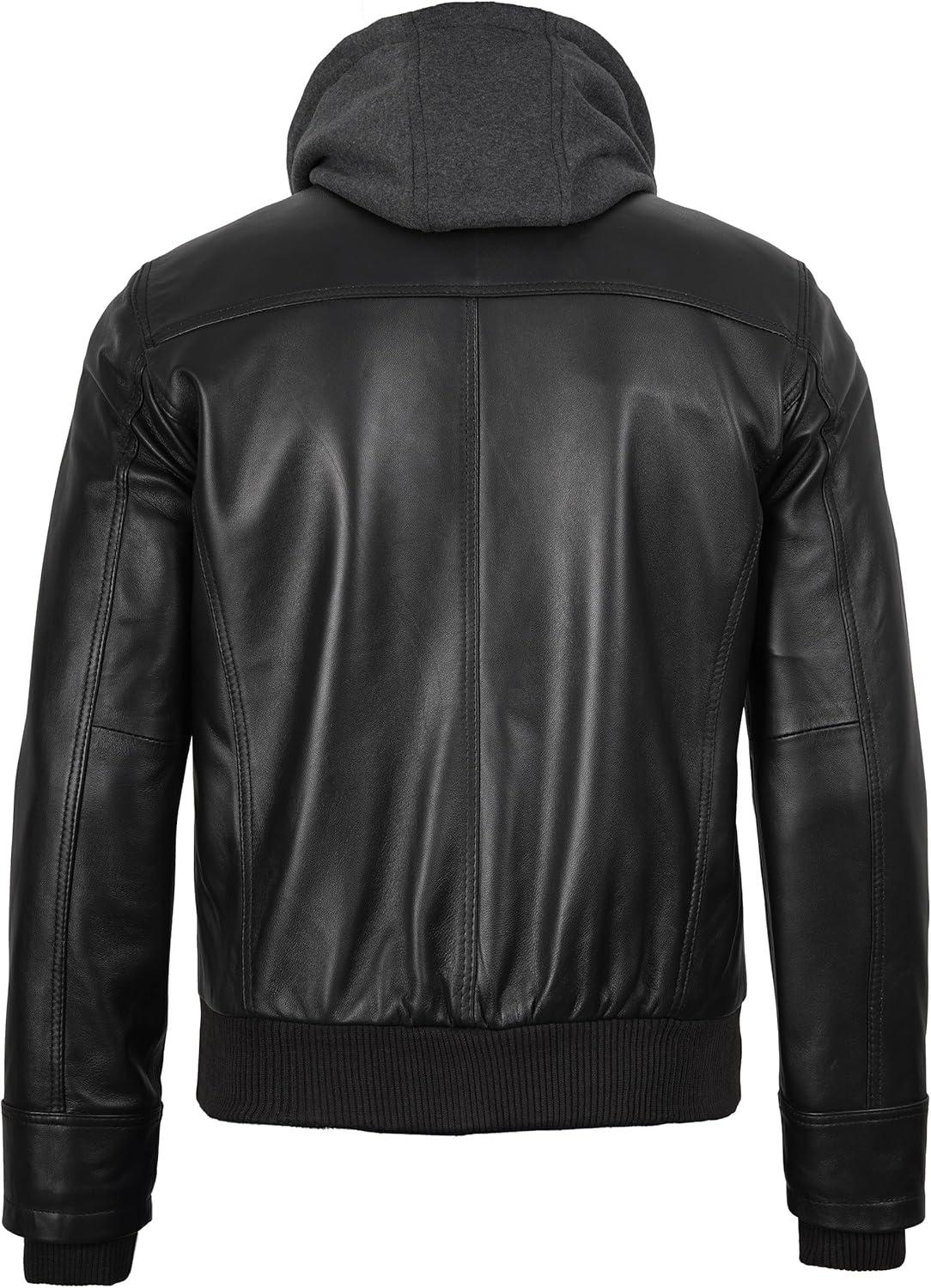 Blingsoul Mens Leather Jacket Removable Hooded Black Leather Jackets For Men(Jonathan Hooded – Black Jacket)