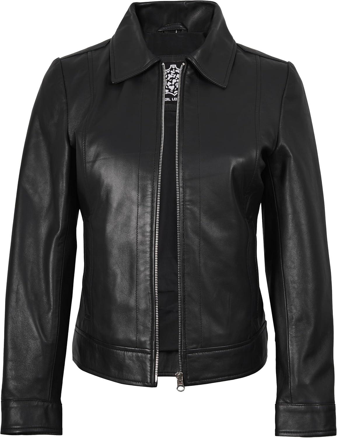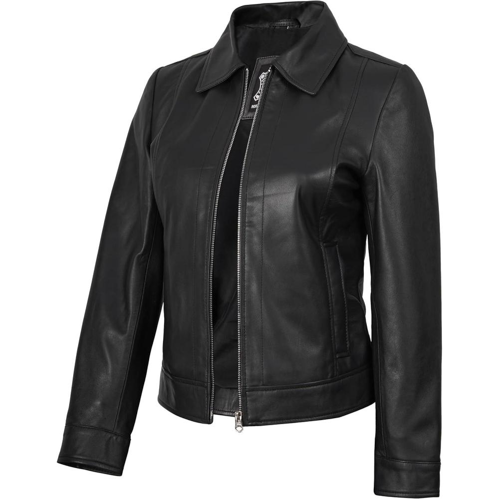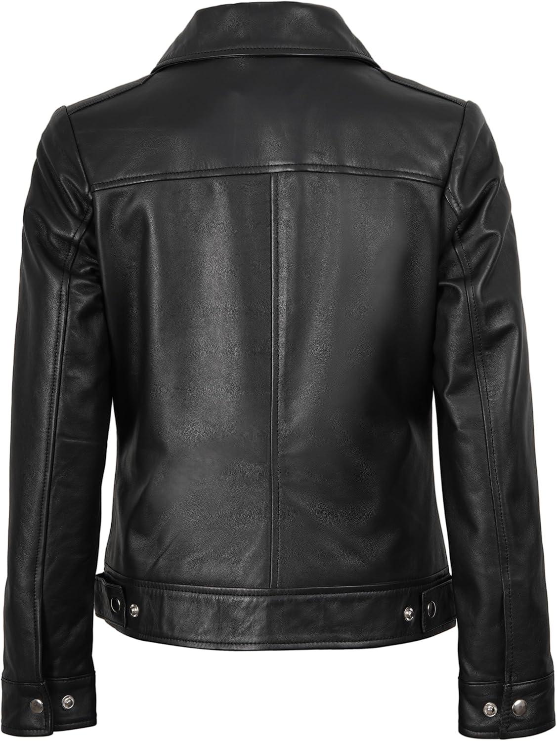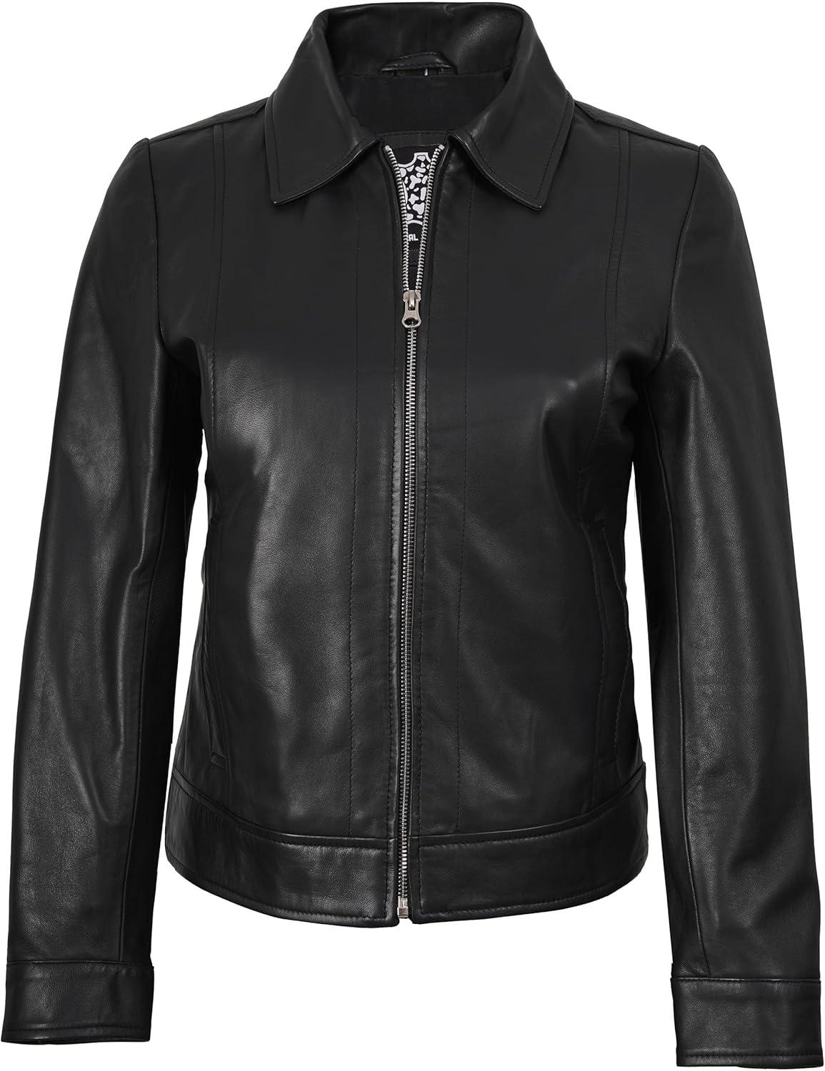 Blingsoul Real Lambskin Leather Jacket for Women, Shirt Collar Leather Jacket Womens(Jose - Black Jacket)