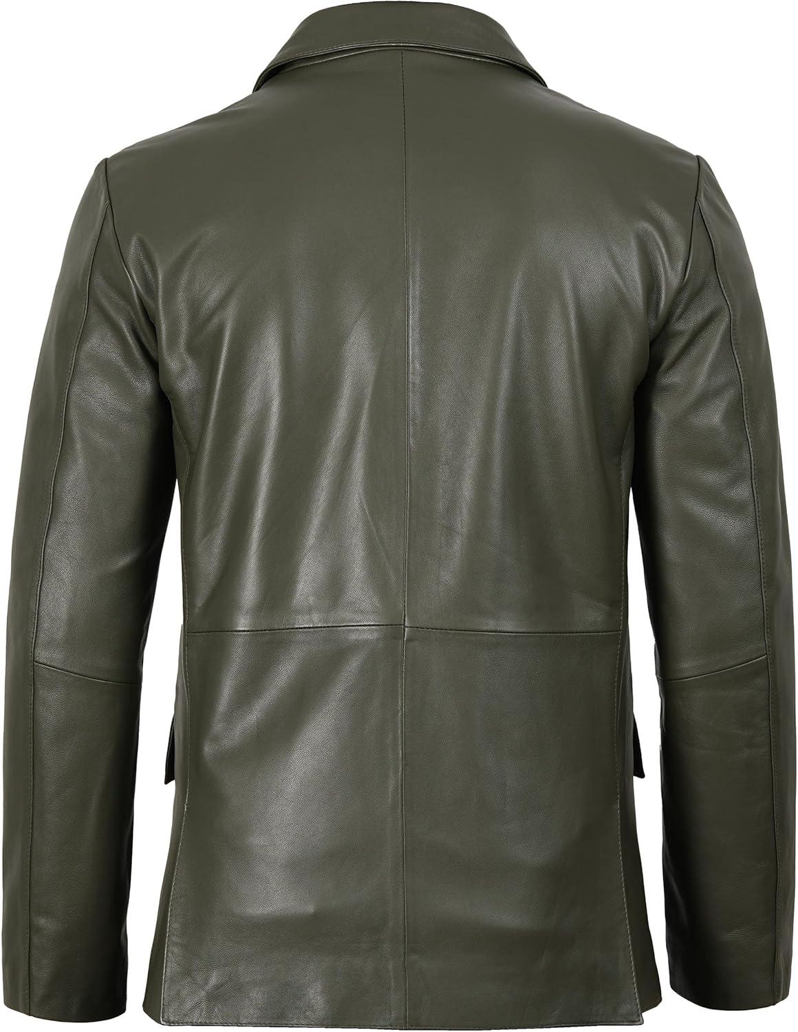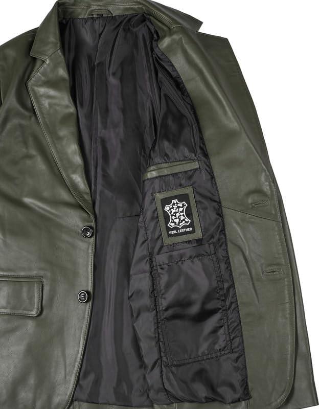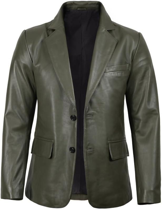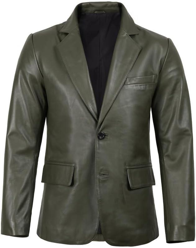 Blingsoul Real Lambskin Mens Leather Blazer – Casual 2 Buttons Leather Jacket for Men(2 Buttons Blazer – Green Jacket)