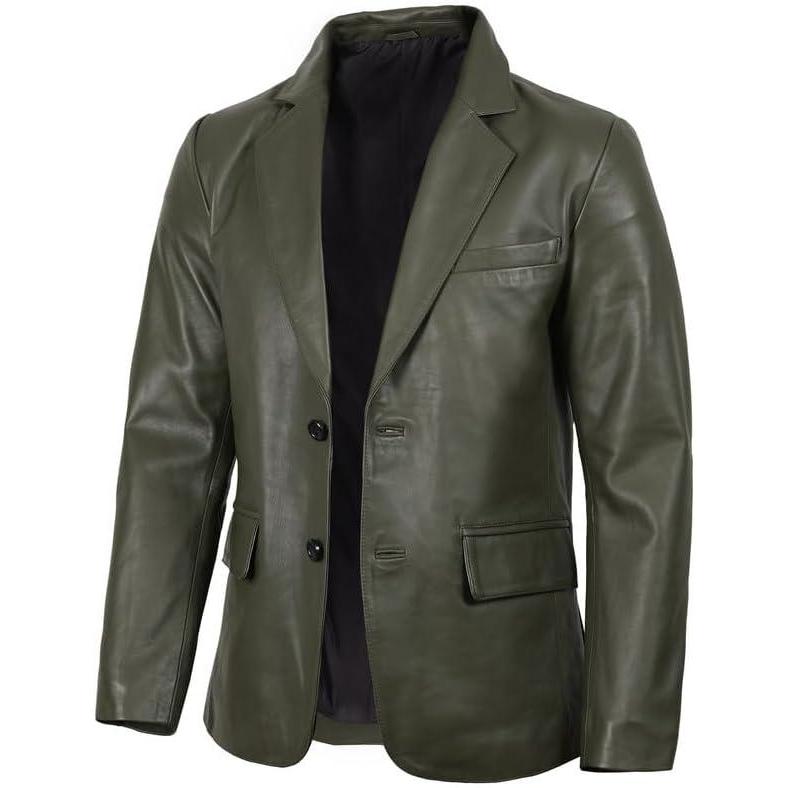 Blingsoul Real Lambskin Mens Leather Blazer - Casual 2 Buttons Leather Jacket for Men(2 Buttons Blazer - Green Jacket)
