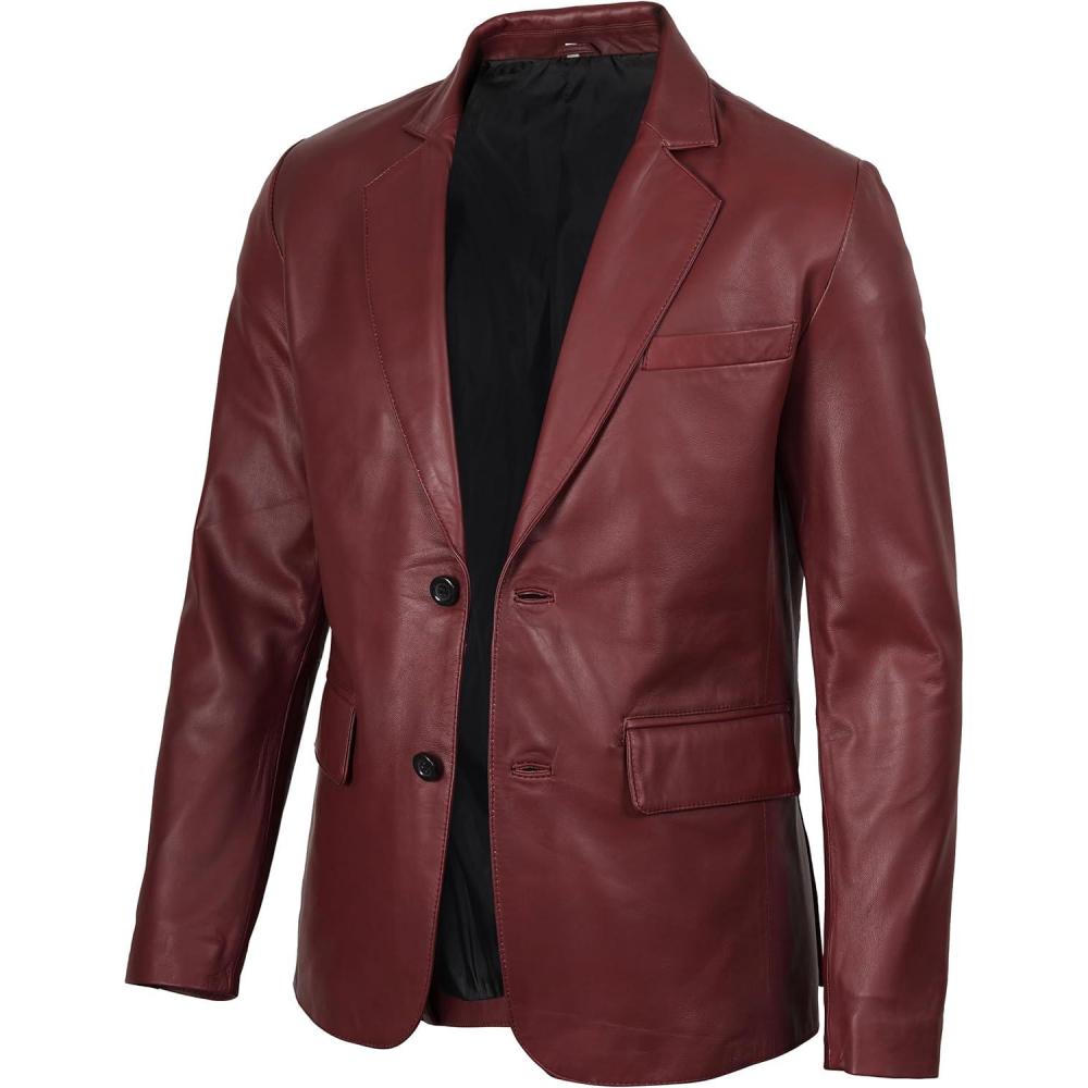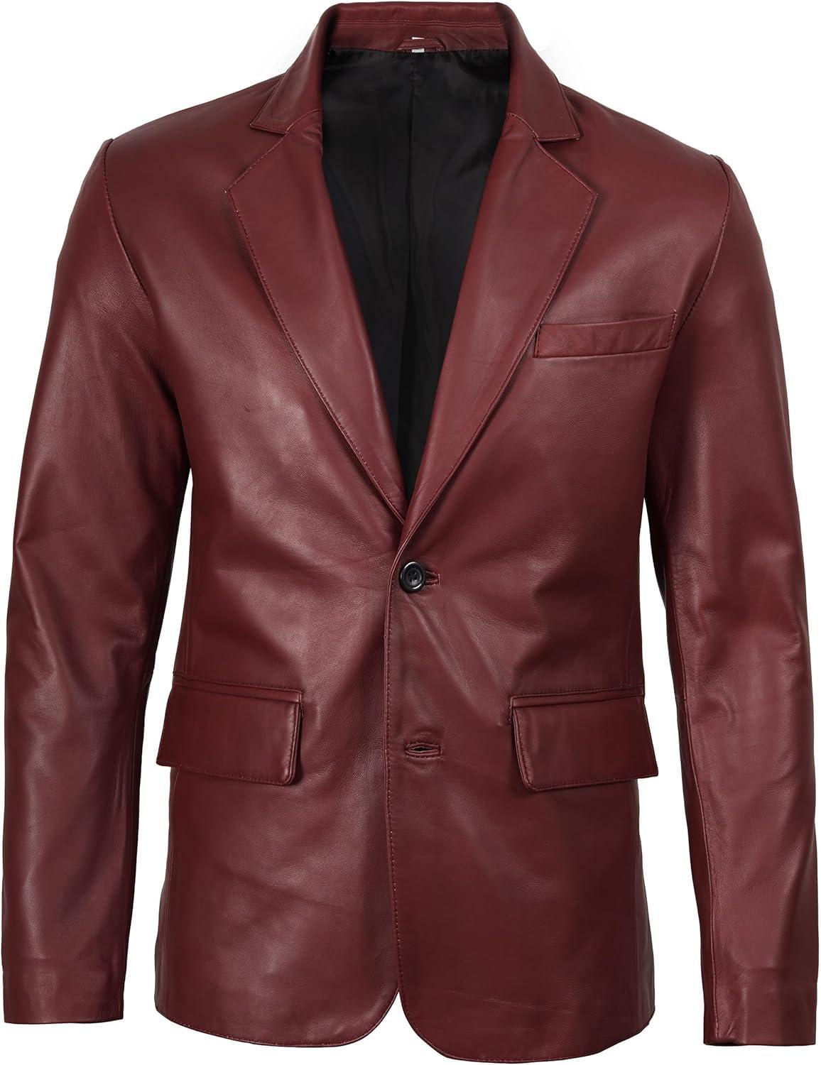 Blingsoul Real Lambskin Mens Leather Blazer – Casual 2 Buttons Leather Jacket for Men(Blazer – Maroon)