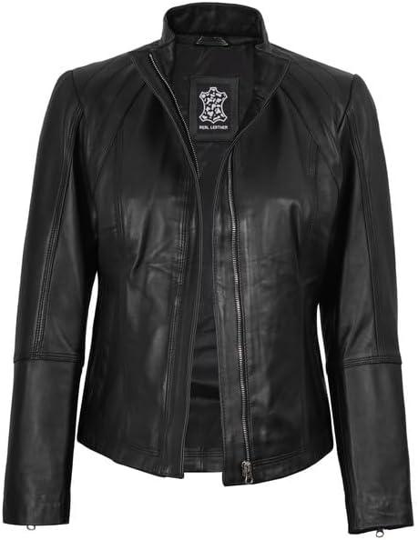 imageBlingsoul Real Leather Jacket For Women Womens Stand Collar Style Leather JacketsAcerra  Black Jacket