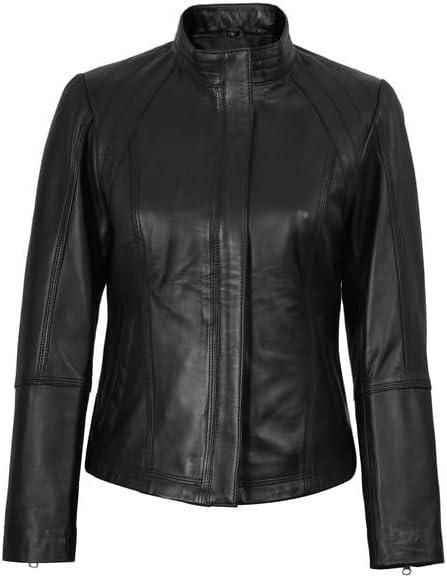 Blingsoul Real Leather Jacket For Women -Women's Stand Collar Style Leather Jackets(Acerra - Black Jacket)