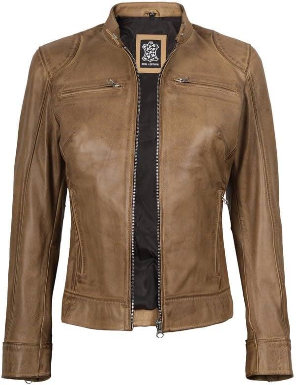 imageBlingsoul Real Leather Jacket Women  Cafe Racer Style Womens Leather JacketsDodge  Camel Jacket