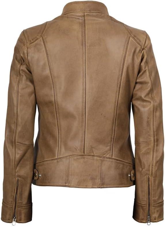 Blingsoul Real Leather Jacket Women – Cafe Racer Style Womens Leather Jackets(Dodge – Camel Jacket)