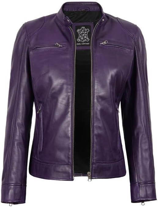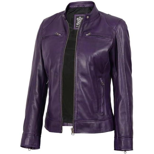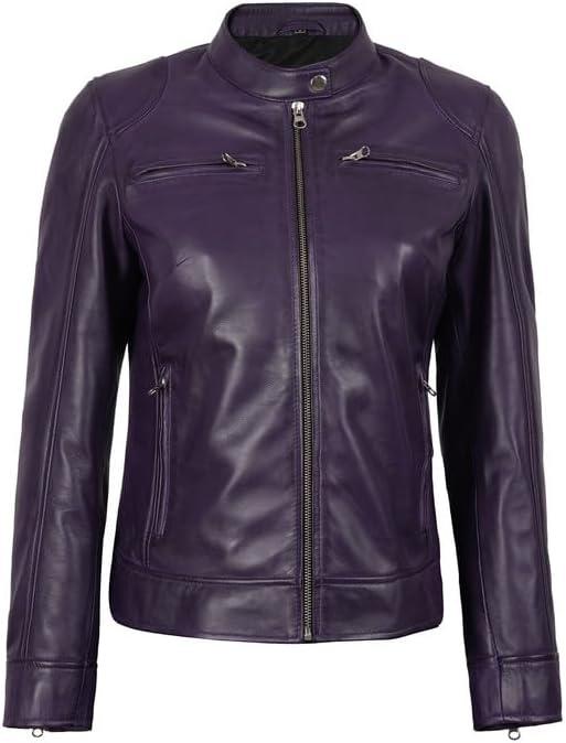 Blingsoul Real Leather Jacket Women - Cafe Racer Style Womens Leather Jackets(Dodge - Purple Wax Jacket)