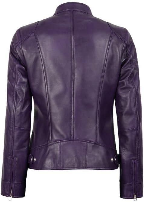 Blingsoul Real Leather Jacket Women – Cafe Racer Style Womens Leather Jackets(Dodge – Purple Wax Jacket)