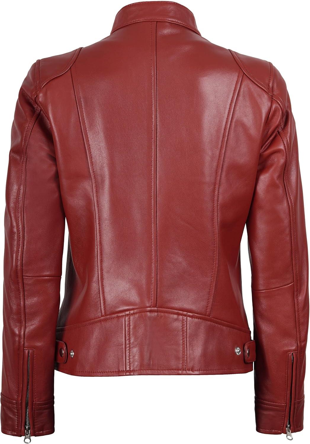Blingsoul Real Leather Jacket Women - Cafe Racer Style Womens Leather Jackets(Dodge - Red Jacket)