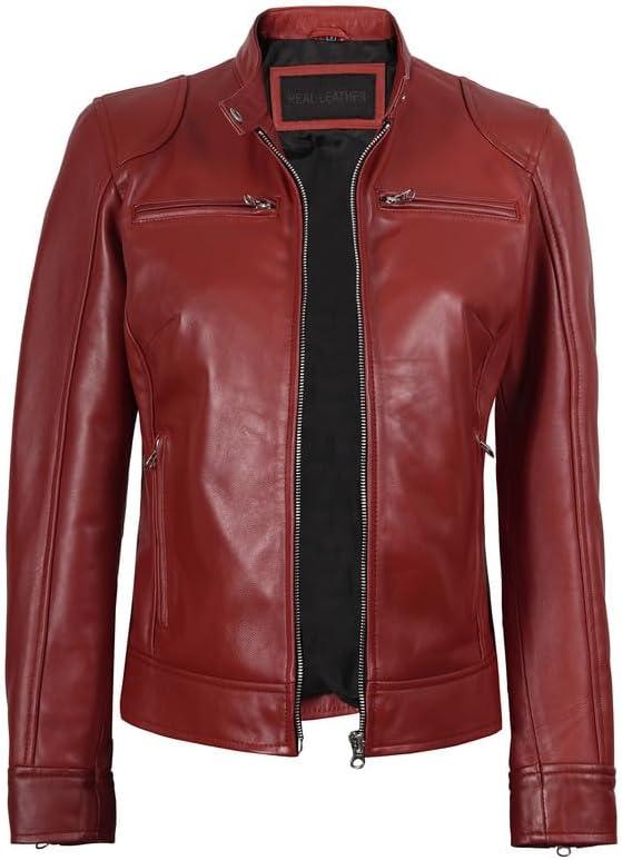 Blingsoul Real Leather Jacket Women – Cafe Racer Style Womens Leather Jackets(Dodge – Red Jacket)