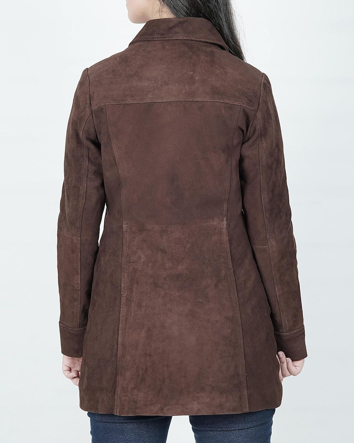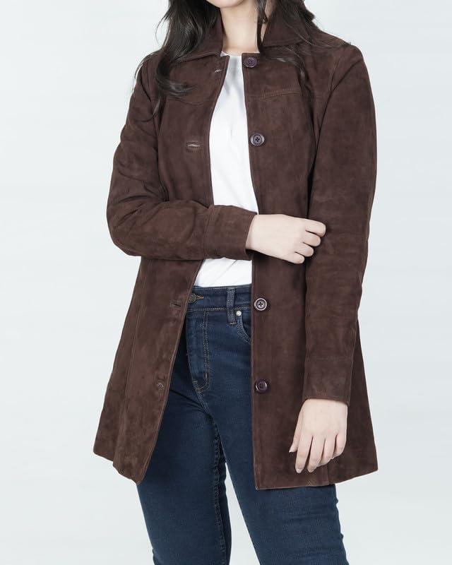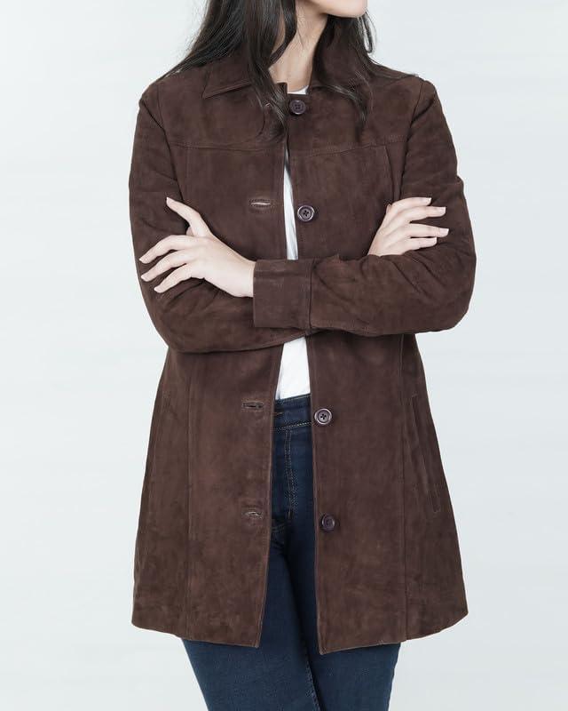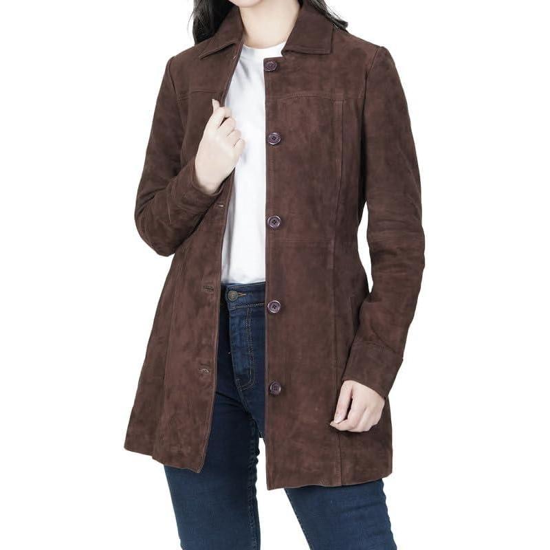 Blingsoul Womens Leather Jacket – Vintage Style Long Leather Jacket Women(Kandis – Dark Brown Coat)