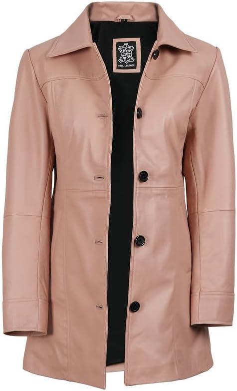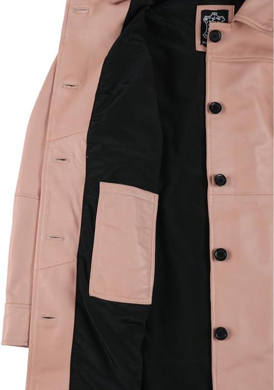 Blingsoul Womens Leather Jacket – Vintage Style Long Leather Jacket Women(Kandis – Pink Coat)