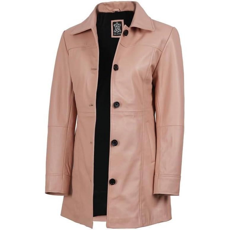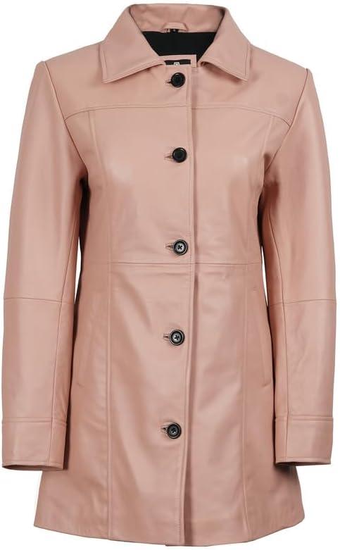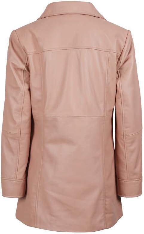 Blingsoul Womens Leather Jacket - Vintage Style Long Leather Jacket Women(Kandis - Pink Coat)