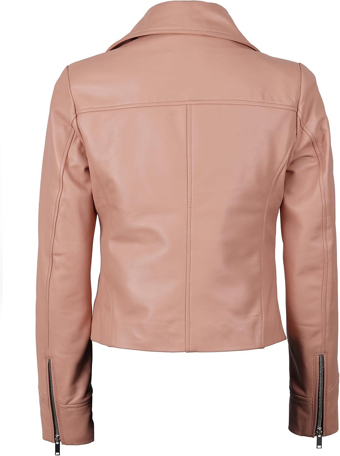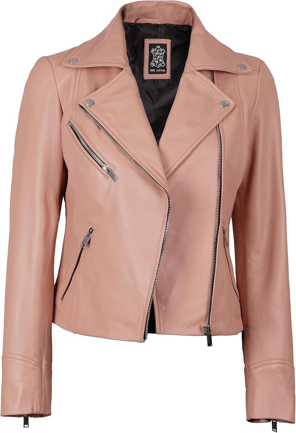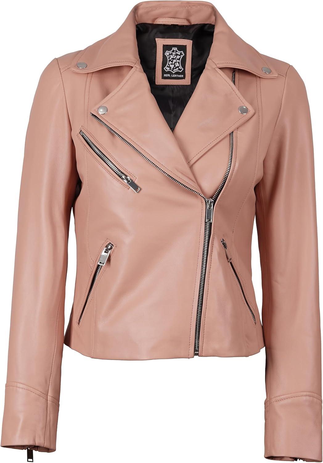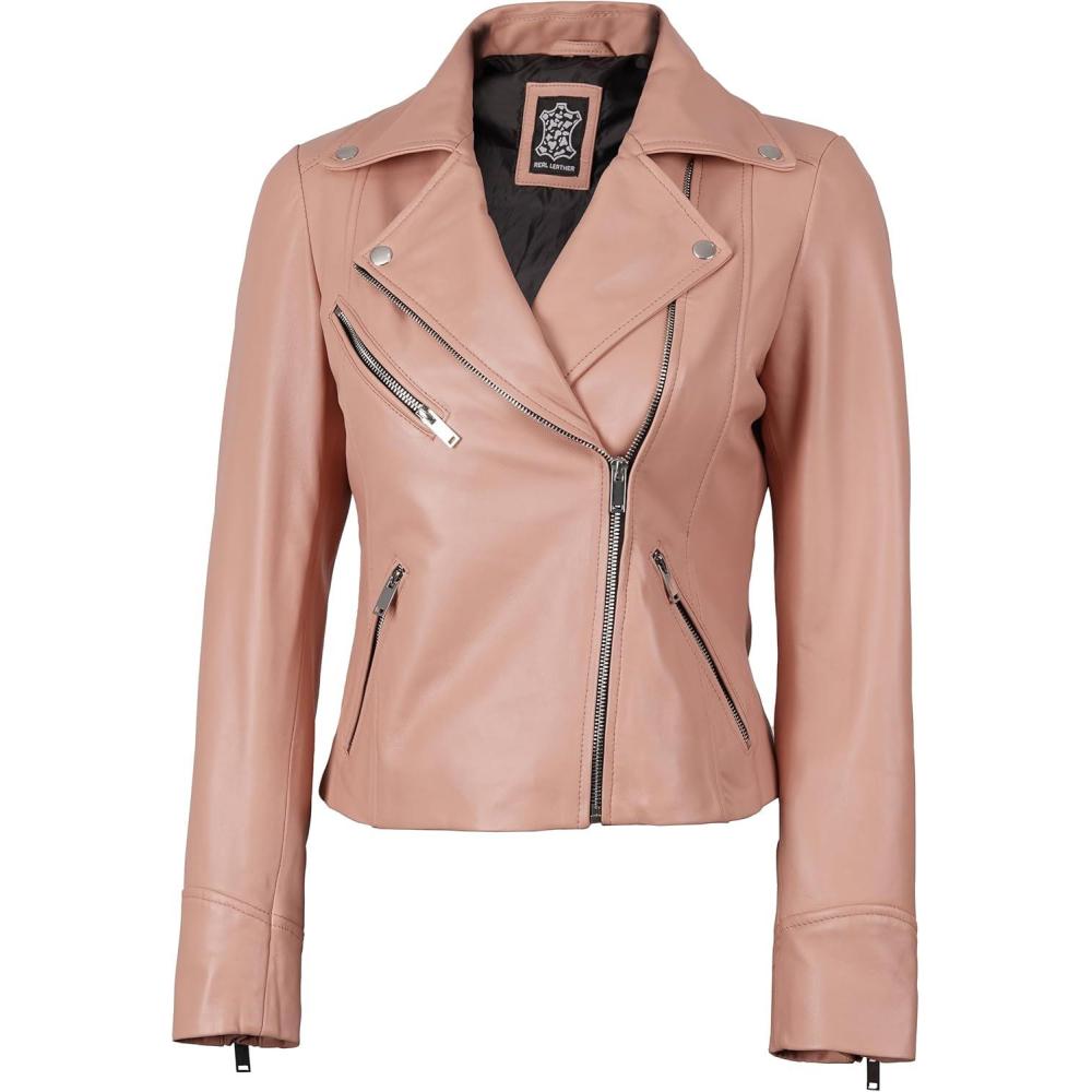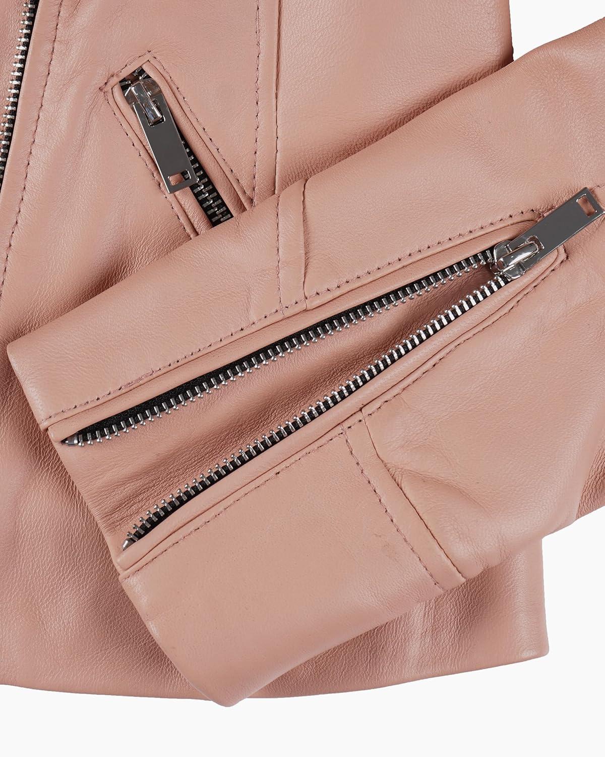 Blingsoul Womens Real Leather Jacket - Asymmetrical Leather Jackets for Women(Ninfa - Pink Jacket)