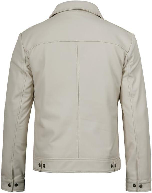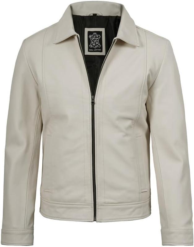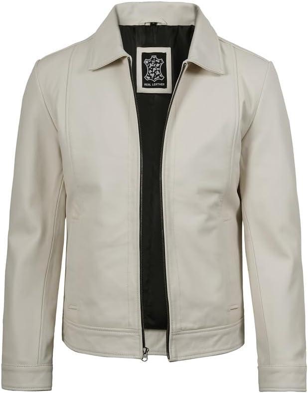 Brown Leather Jacket Men - Black Real Lambskin Mens Leather Jacket(Jose - Off White)