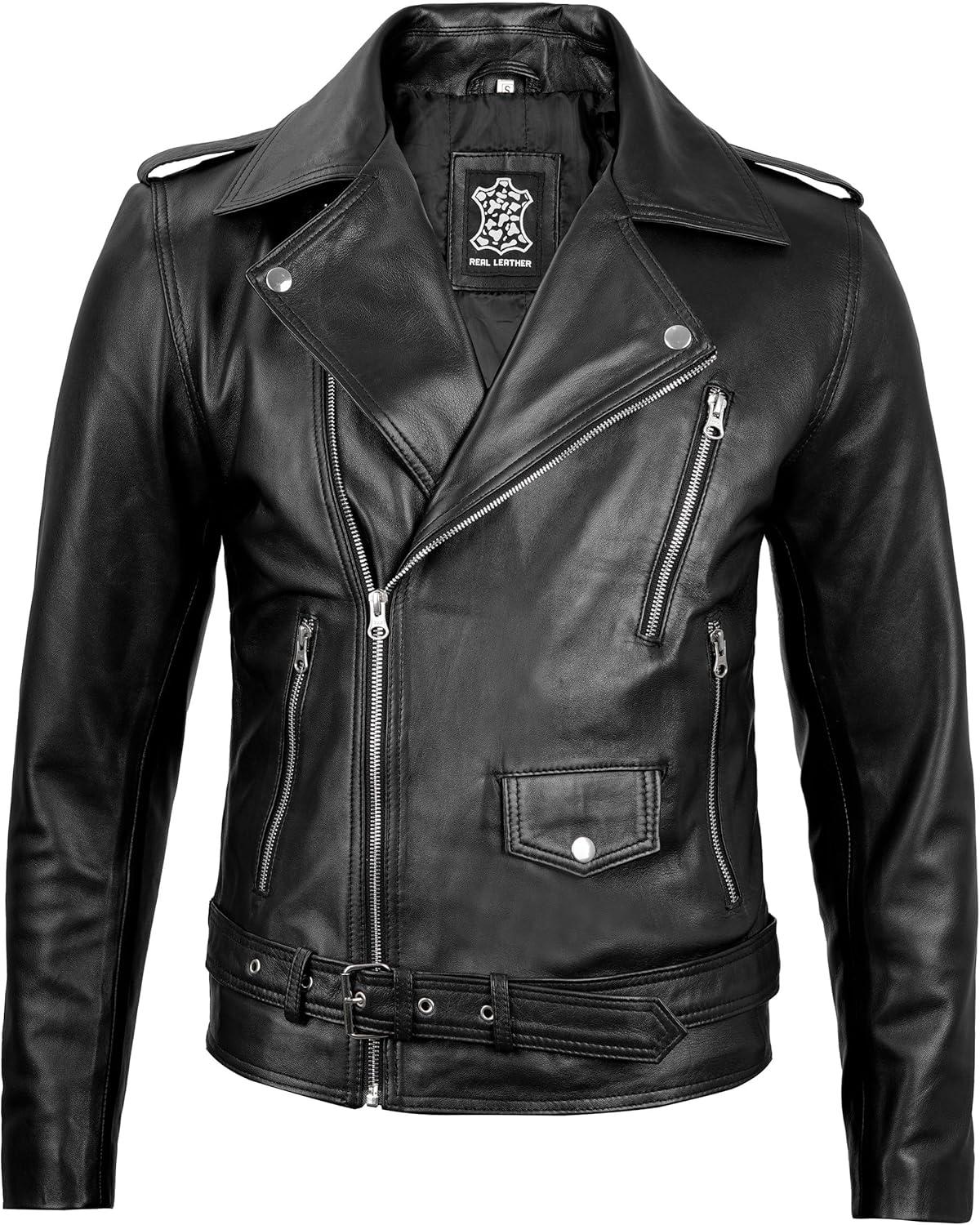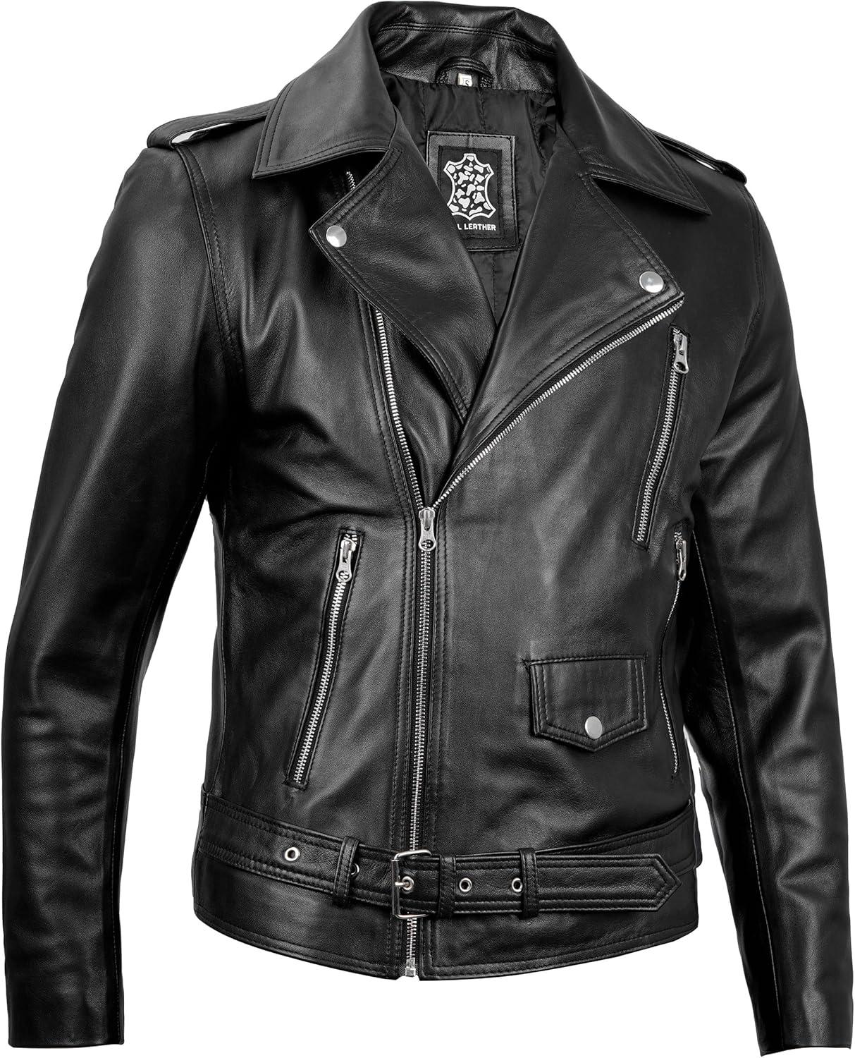Leather Jacket Men, Black and Brown Leather Jackets For Men(Belted - Black Jacket)